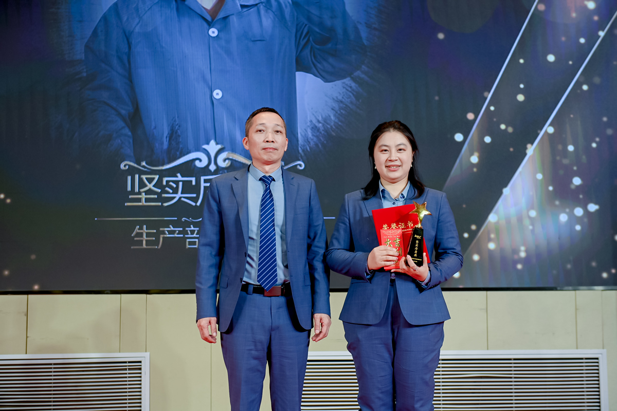 頒獎詞:是她,點亮了生產(chǎn)車間的第一盞“燈”。面對生產(chǎn)增量迅猛,她毫無畏懼,勇挑重?fù)?dān),不懼嚴(yán)寒酷暑,信心百倍的帶領(lǐng)團隊堅守崗位,詮釋了“勇?lián)?zé)任的真諦”!